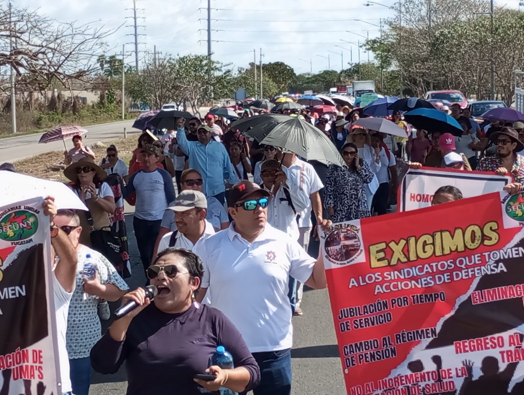 Mientras la líder de la manifestación, la docente Lilia Canul Naal, detalló que tienen preocupaciones por posibles descuentos a sus salarios, prestaciones y derechos laborales.