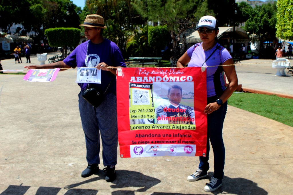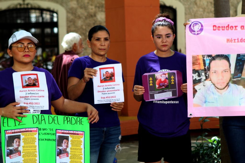 MÉRIDA, YUCATÁN, 18/06/2023. — Mamás, que forman parte del colectivo “Mamita Ponte Xux”, colocaron un tendedero para denunciar ante la sociedad yucateca, los padres, que no han depositado la pensión alimenticia de sus hijos. Los deudores son buscados.