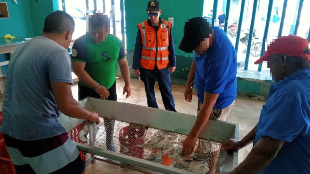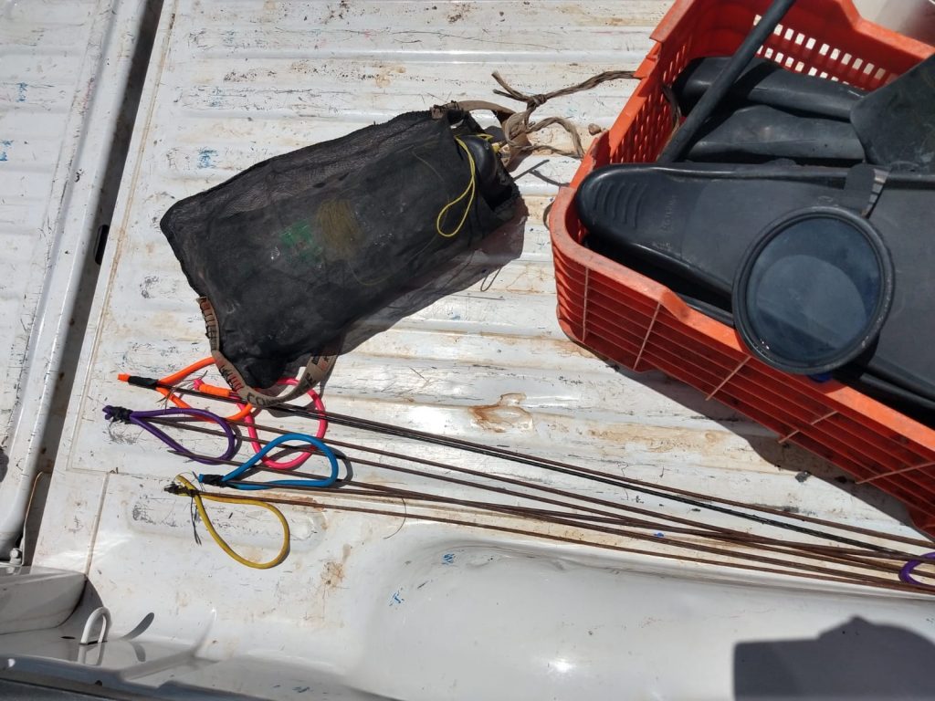 “(…) fueron dos embarcaciones, se encontraron en su interior artes de pesca no autorizadas, 13 ganchos, siete tipos hawaianas, 10 visores, 14 pares de aletas, además de aproximadamente 27 kilos de pulpo, de los cuales seis no cumplían con la talla mínima autorizada”