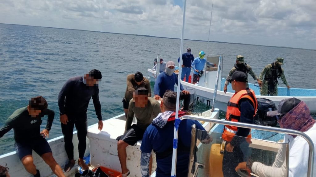 “También fueron encontrados, cuatro meros rojos con talla inferior a la permitida, por lo que el personal de CONAPESCA procedió a levantar las actas correspondientes, conduciendo las embarcaciones a puerto donde se tomaron los datos de los tripulantes, detectando que ninguno contaba con libreta de mar”, dice un informe de la Marina a la sociedad.
