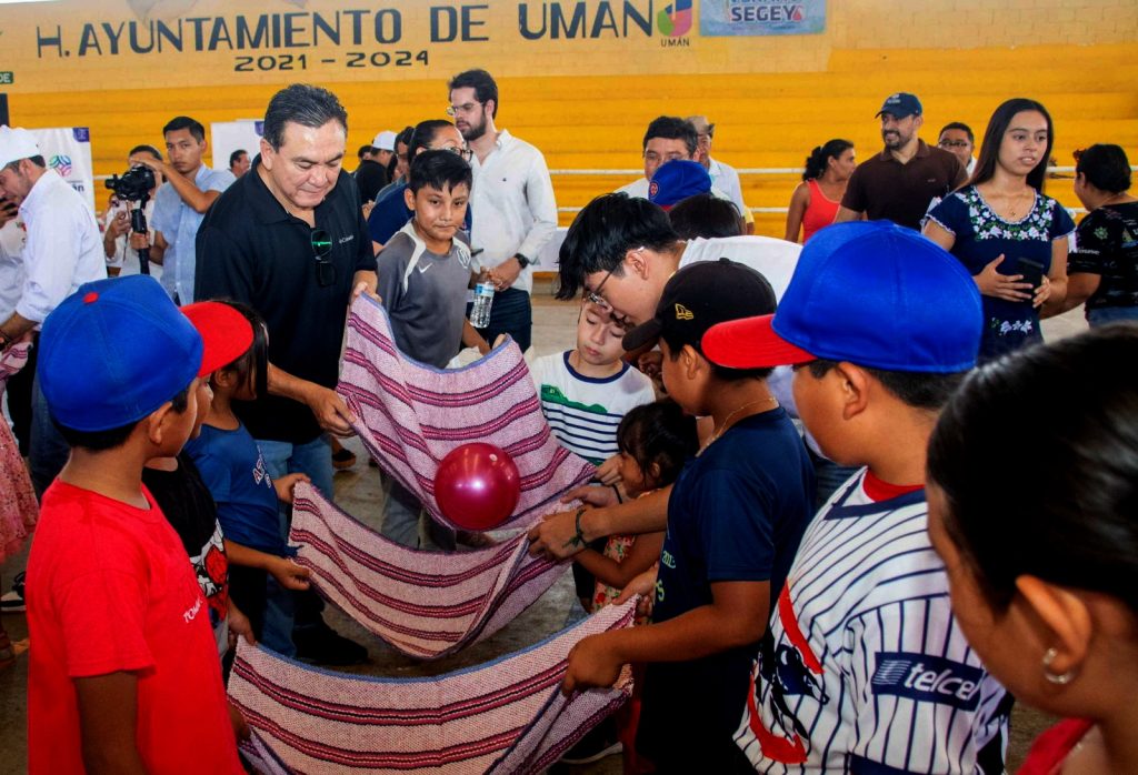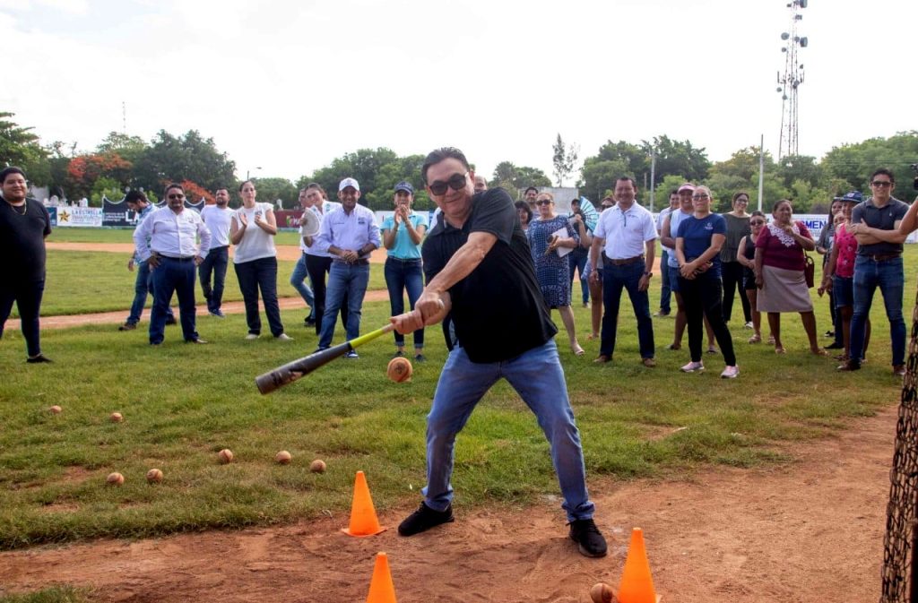 En el marco de su visita a este municipio, el secretario de Educación visitó la práctica de bateo del equipo Cachorros de Umán, conformado por 16 jugadores entre 9 y 10 años de edad.