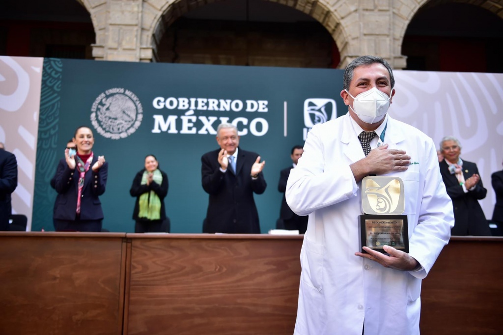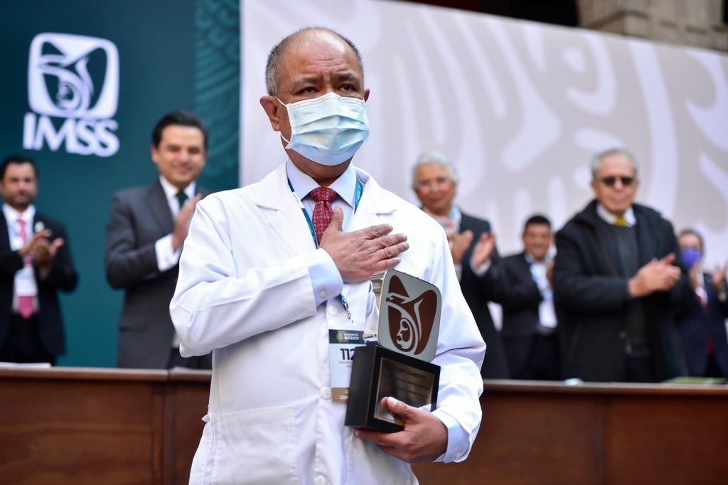 Desde el Palacio Nacional y en presencia del director del IMSS, Zoé Robledo Aburto, el Gobernador atestiguó la entrega de reconocimientos a la trayectoria profesional e institucional, al doctor Guillermo Careaga Reyna, por su destacada labor a favor de la cirugía cardiovascular, en beneficio de los derechohabientes, y al doctor Rafael Medrano Guzmán, por sus notables aportaciones a la oncología en el país.