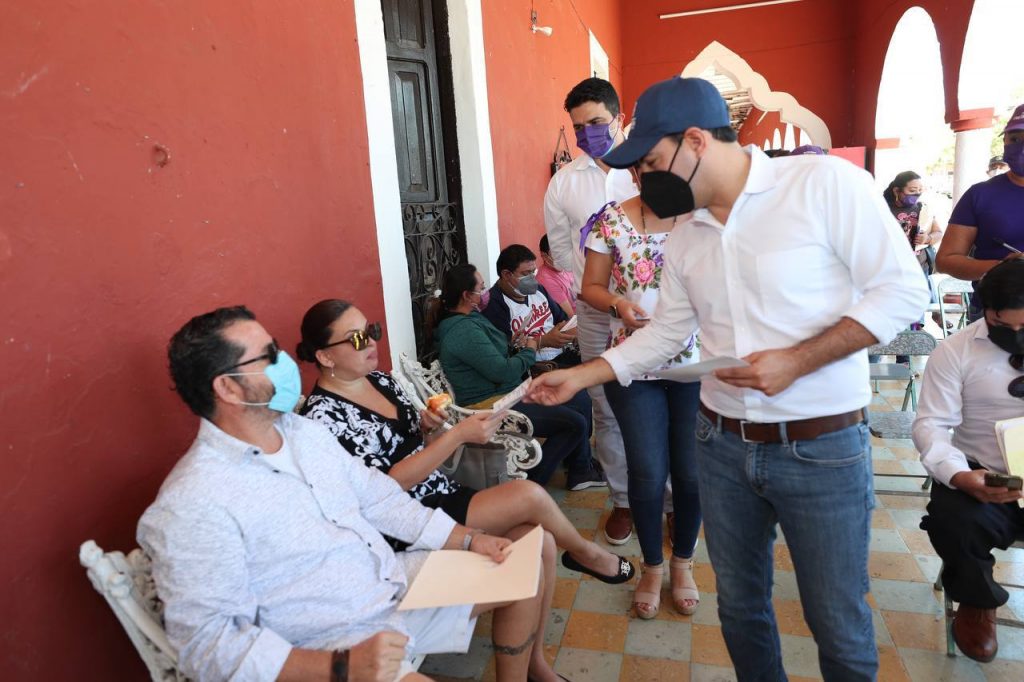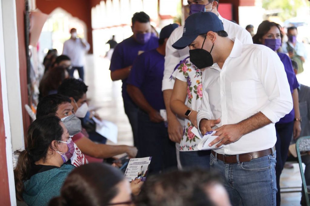 Motul, 14/01/2022. -Mauricio Vila Dosal, gobernador de Yucatán puso en marcha las Brigadas Violeta, esquema que inició de manera simultánea en los 106 municipios del estado y mediante el cual se dan a conocer los servicios de orientación y atención integral oportuna.