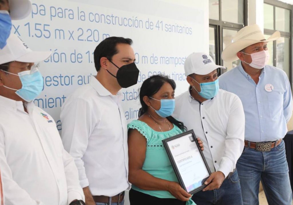 Posteriormente, Vila Dosal realizó la entrega de certificados para la construcción de sanitarios rurales del programa Proagua 2021, en la comisaría de Kabichén en Tizimín, con el objetivo de mejorar la salud de la población erradicando el fecalismo al aire libre.