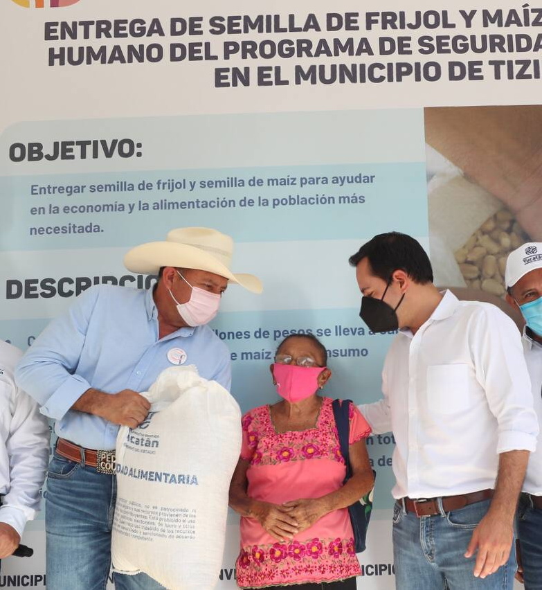 Durante una gira de trabajo por Tizimín, Vila Dosal entregó, junto con el alcalde, Pedro Couoh Suaste, diversos apoyos a la población como paquetes de semillas de frijol, maíz para consumo, de abeja reina a apicultores, certificados de vivienda social, sanitarios rurales y mobiliario nuevo para escuelas de primaria general e indígena de esta demarcación.