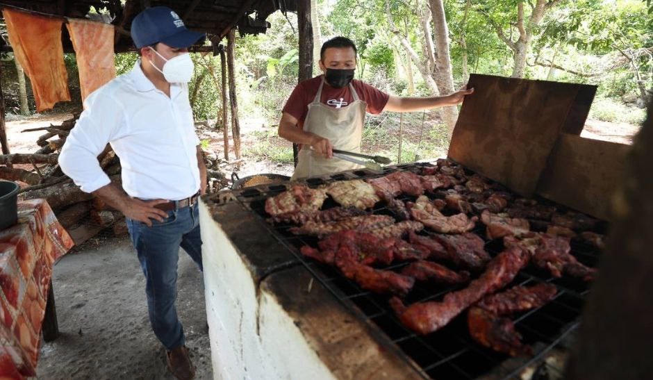 Además, Julio continuó detallando al Gobernador que en el lugar también venden la tradicional carne ahumada, enchilada, chicharra, morcilla, longaniza, maciza y carne de cerdo en general.— Y ¿qué necesitas?, ¿en qué te ayudo? – preguntó Vila Dosal, mientras el hombre lo invitaba a ingresar al patio ubicado en la parte trasera del local, en donde se preparaban para comer y decidieron compartir los alimentos con el Gobernador.