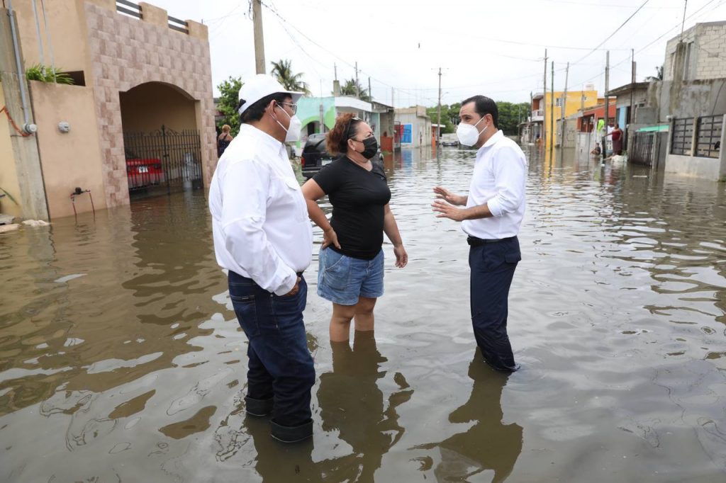 Progreso, Yucatán, 17/06/2021.- El Gobernador Mauricio Vila Dosal, recorrió la zona afectada por inundaciones en el Puerto de Progreso para ofrecer ayuda a las familias que se vieron damnificadas a causa de las intensas lluvias que se registraron durante la tarde y noche de ayer miércoles y la madrugada de este jueves, las cuales están asociadas a una zona de baja presión en el Golfo de México.