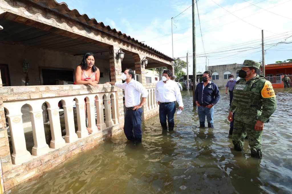 Progreso, Yucatán, 17/06/2021.- El Gobernador Mauricio Vila Dosal, recorrió la zona afectada por inundaciones en el Puerto de Progreso para ofrecer ayuda a las familias que se vieron damnificadas a causa de las intensas lluvias que se registraron durante la tarde y noche de ayer miércoles y la madrugada de este jueves, las cuales están asociadas a una zona de baja presión en el Golfo de México.