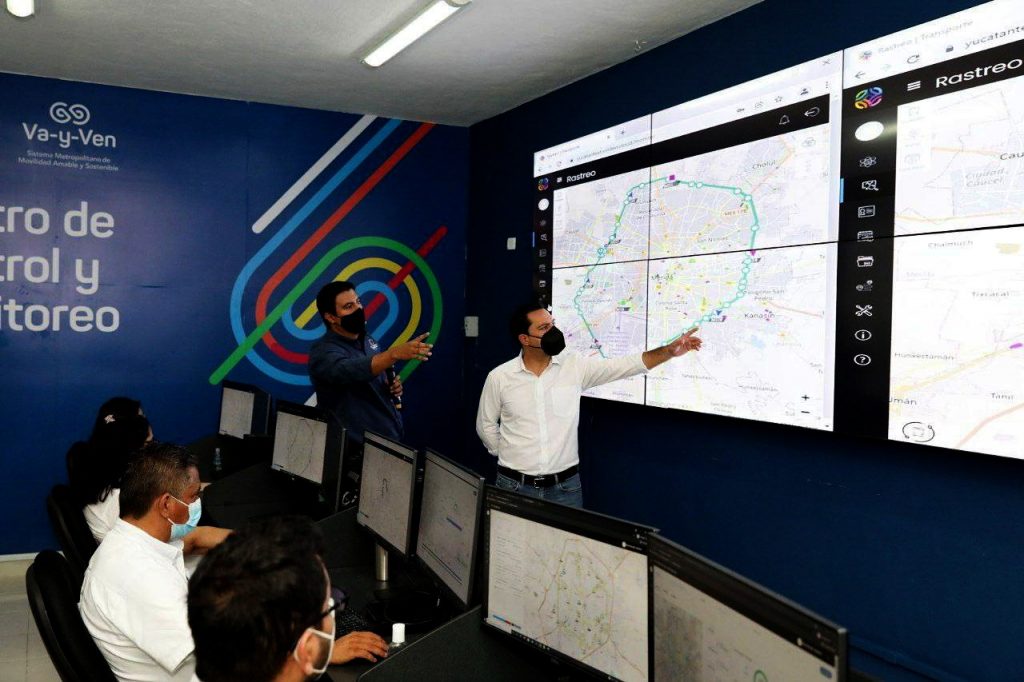 Vila Dosal corroboró, en tiempo real, la localización y el trayecto de los modernos autobuses de la ruta periférico del sistema de transporte “Va y Ven”, así como el análisis puntual de los monitoristas, para identificar los puntos de origen y destino con mayor afluencia o los paraderos que presentan un aforo más alto.