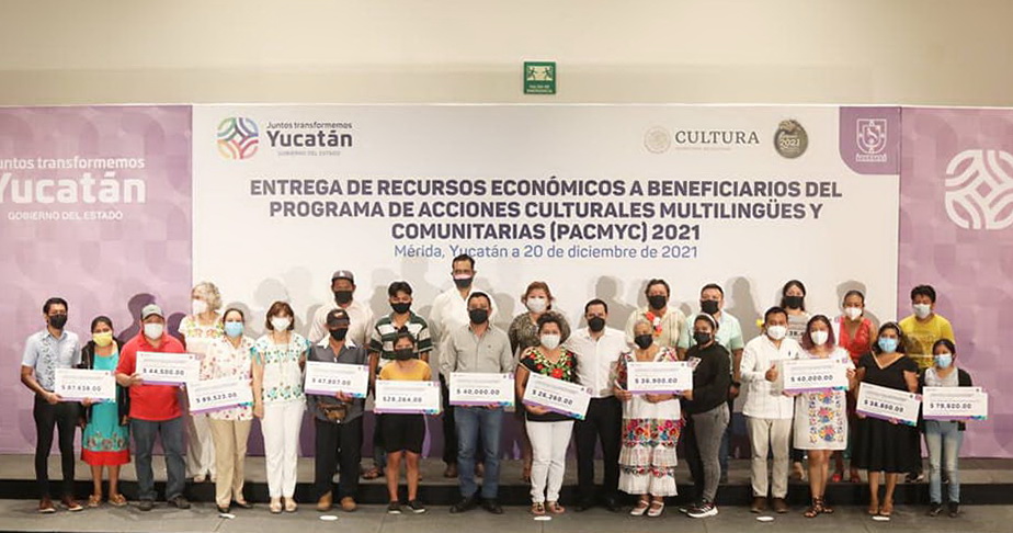 Vila Dosal entregó estímulos económicos por más de medio millón de pesos del Programa de Acciones Culturales Multilingües y Comunitarias (Pacmyc) 2021, a 13 propuestas que prestan atención prioritaria a grupos vulnerables y poblaciones de 10 municipios del territorio estatal.