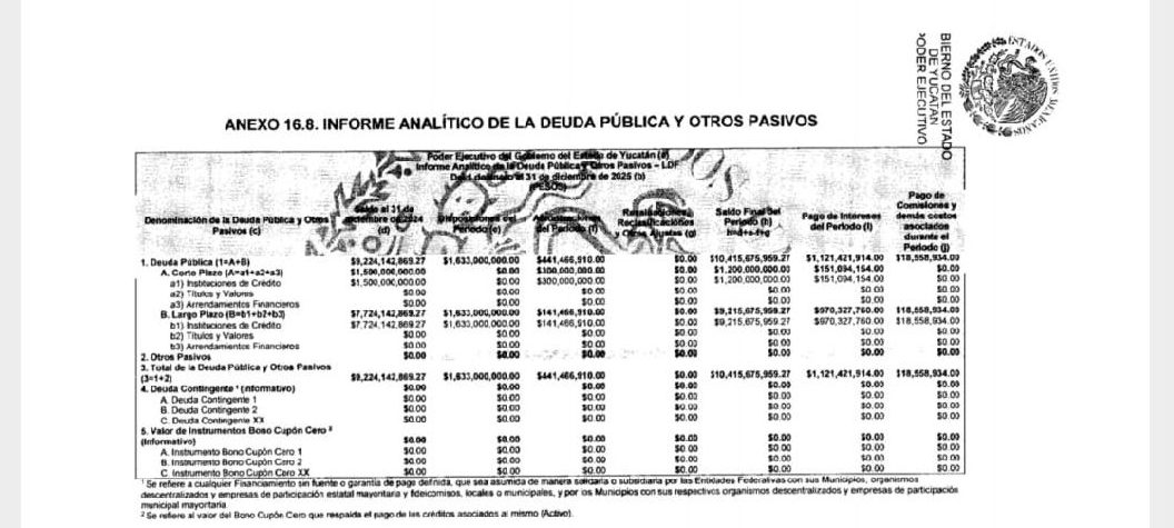 >>>Gobierno de Yucatán iniciaría el año con deuda de 10 mil 545 millones de pesos.