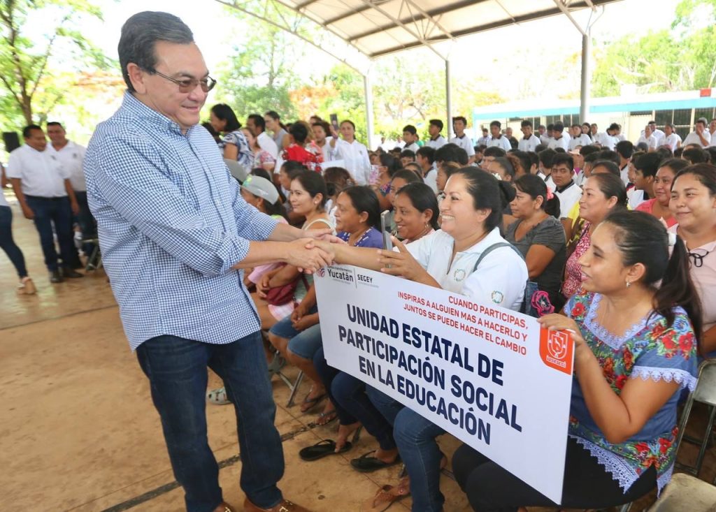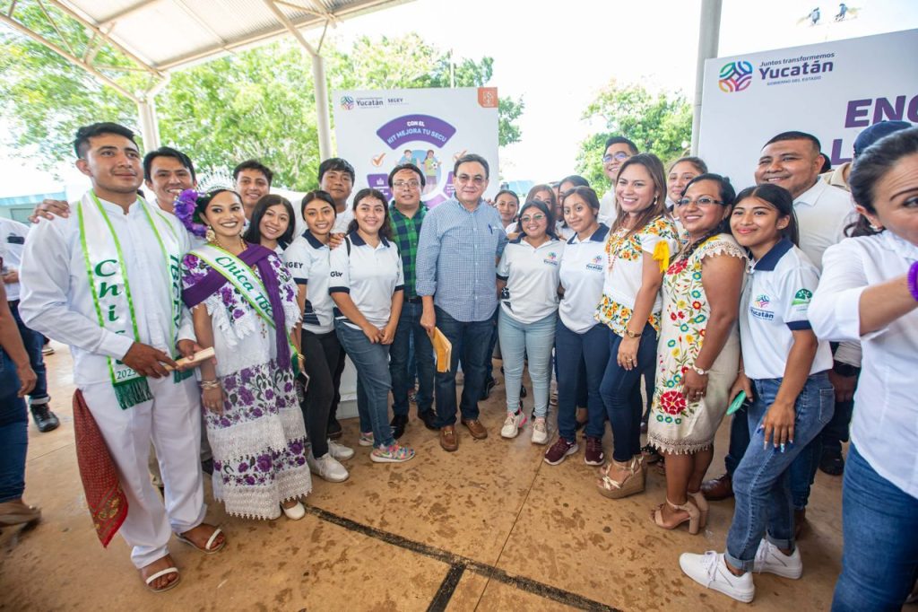 La entrega de los apoyos se realizó en el marco de los Encuentros con la Comunidades Educativas que encabezó el secretario de Educación, Liborio Vidal Aguilar, acompañado de los presidentes municipales Rafael Montalvo Mata y José Antonio Pérez Cabrera, de Ticul y Dzan, respectivamente.