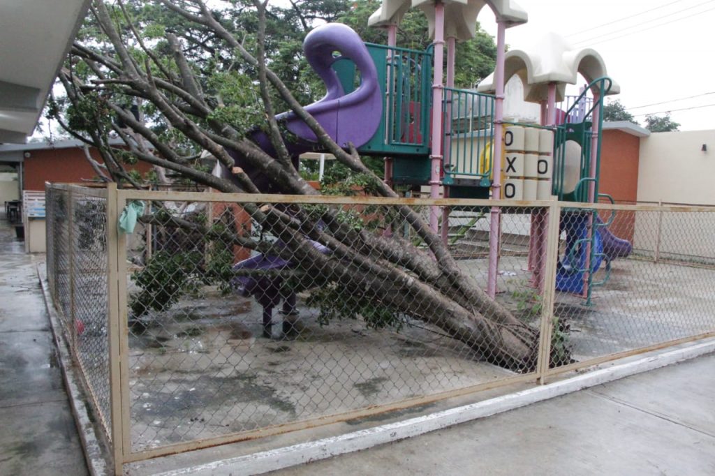 Debido a que la Secretaría de Educación General de Yucatán, ni el Ayuntamiento de Kanasín, mandaron a personal a recoger la basura, la tala de tres árboles inclinados debido al paso del huracán “Grace” el mes pasado.