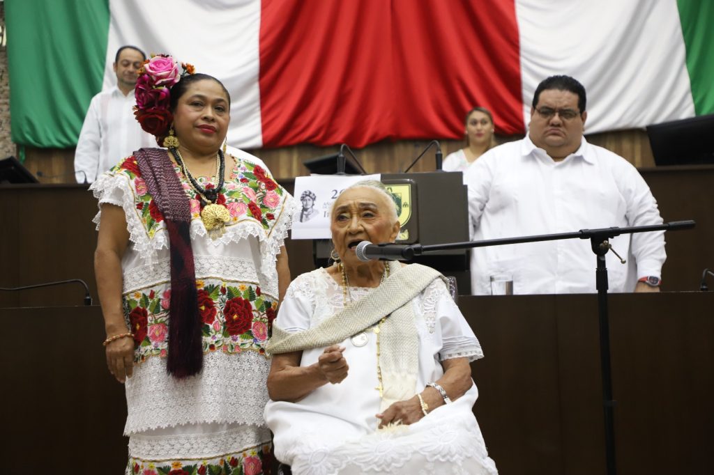 MÉRIDA, YUCATÁN, 09/03/2025. —Nacida en el municipio de Maxcanú y a sus 92 años de edad, continua su lucha social y políticas, pero, debido a esto fue reconocida en el Congreso de Yucatán por su trayectoria como artesana, poeta y política, pero, que ha sido víctima del patriarcado.