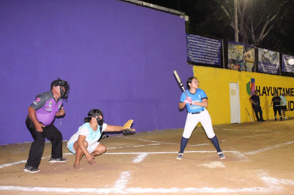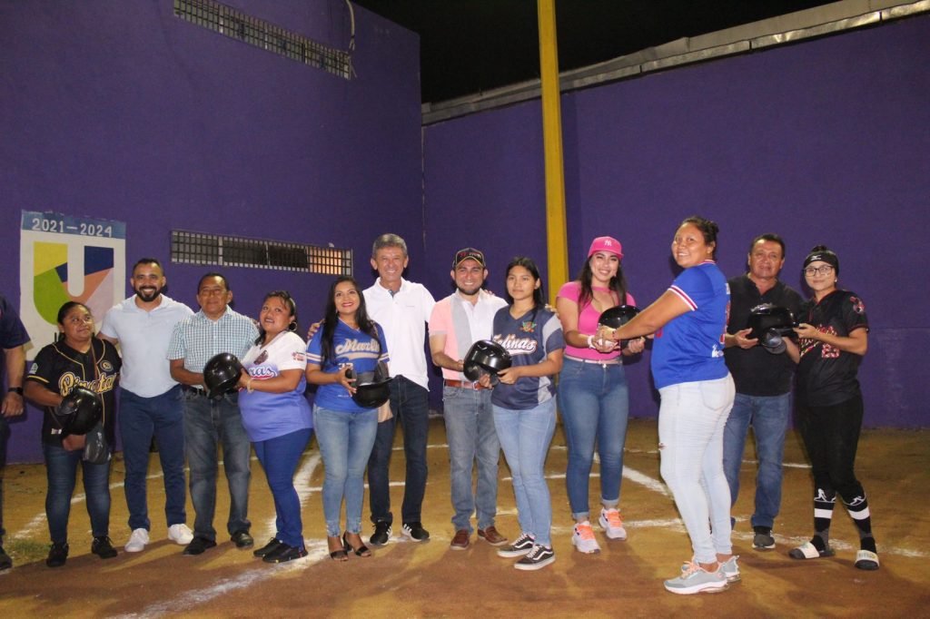UMÁN, YUCATÁN, 19/09/2023. —Impulsando espacios para las mujeres en el deporte, inauguraron el segundo campeonato de la Liga de Softball Femenil, en el municipio de Umán, con un partido amistoso entre las Amazonas de Yaxunah, venciendo a la Selección Femenil de Umán 13 a 6.