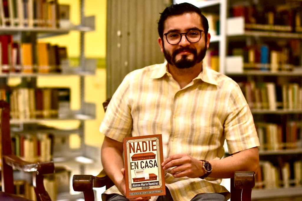 MÉRIDA, 23/01/2023. —Ausencias de padres e hijos, verdades incómodas, lo que la gente esconde y enfermedades que se confunden con excesos, se desarrollan en “Nadie en Casa”, primer libro de Alonso Marín Ramírez, que editaron la Secretaría de la Cultura y las Artes (Sedeculta) y Ficticia.