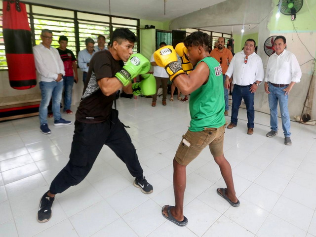 Al concluir la gira de trabajo y a invitación del entrenador Edwin Couoh, el titular de la Segey visitó el gimnasio de box, donde se forman nuevas generaciones de deportistas.