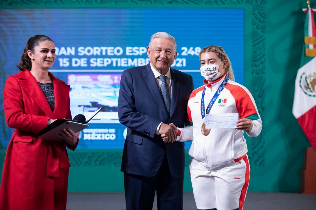 Indicó que los estímulos para las y los atletas provienen de recursos del Instituto para Devolver al Pueblo lo Robado, los cuales se obtienen del sorteo o subasta de bienes decomisados a la delincuencia de cuello blanco u organizada. En esta ocasión la Lotería Nacional colaboró con esa institución para llevar a cabo el Gran Sorteo Especial número 248 el pasado 15 de septiembre.