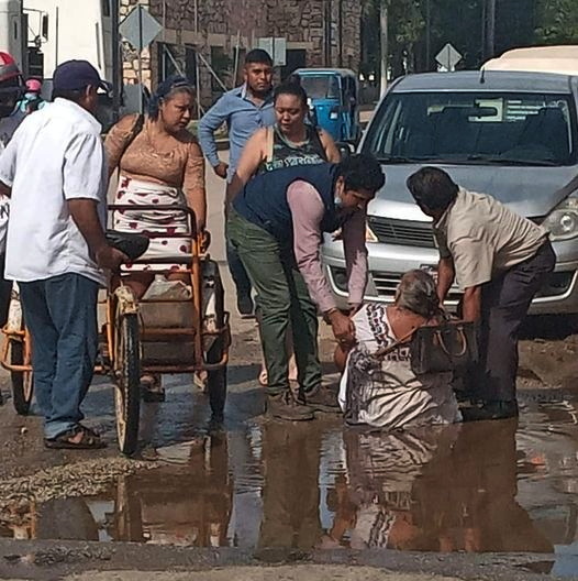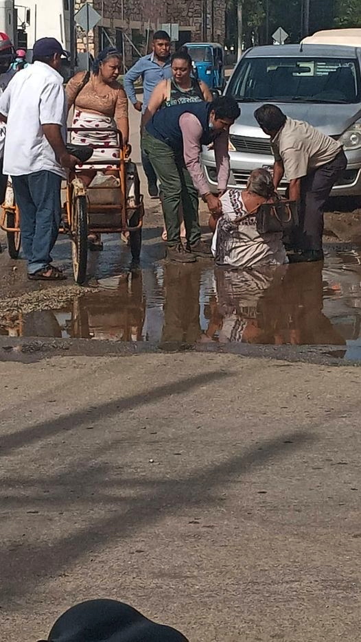 Una vecina denunció en su cuenta de redes sociales, como una mujer, de la tercera edad, se fue “tragada”, en un bache de grandes dimensiones, ubicada en la calle 45 y 52.