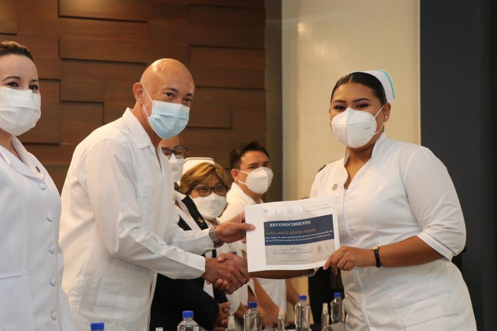 “Gracias también por permitir a sus hijos conectarse a las clases que tuvieron que ser virtuales, por mantener los servicios de internet en sus hogares, con el sacrificio que esto implica, inclusive tuvieron que implementar diversas estrategias, algunos de ustedes simular que son los pacientes y que los estudiantes pudieran practicar, de verdad se los agradecemos infinitamente”, remarcó.