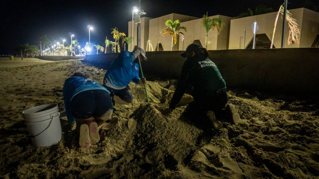 PROGRESO, YUCATÁN, 18/07/2021.- En playas del Malecón Internacional de Puerto Progreso fue una vez más, escenario del desove de una tortuga de la especie Carey, la cual acostumbra acudir a la costa yucateca para depositar los huevos que contribuirán a perpetuar esta importante especie marina y con ello la fauna de nuestro estado.
