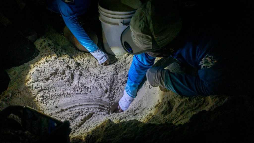 Playas de Progreso escenario, desove de huevo de tortuga Carey
