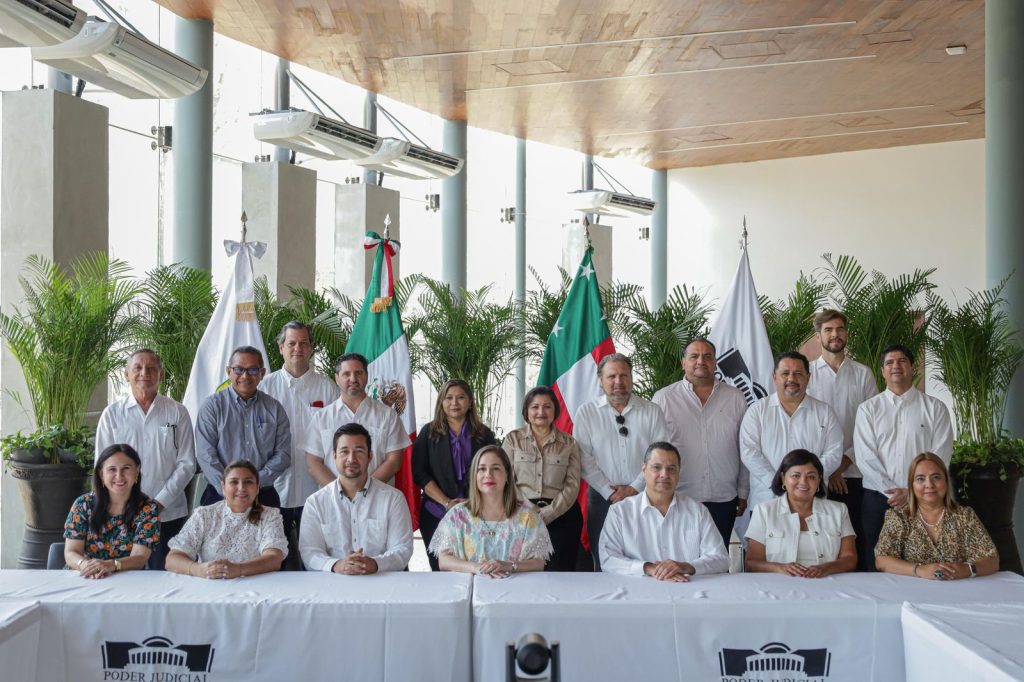 La magistrada presidenta del Tribunal Superior de Justicia del Estado (TSJE) y María Carolina Canto Valdés, sostuvo una reunión de trabajo, de manera virtual, con representantes de la comunidad comercial internacional y, presencial, con dirigentes y directivos de los sectores empresarial, académico y colegios de profesionistas de la entidad para analizar el proyecto y quienes externaron su apoyo a esta iniciativa que podría marcar un nuevo capítulo en la historia jurídica del estado.