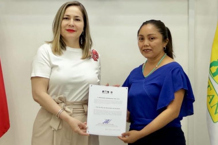 >>>La magistrada presidenta del Tribunal Superior de Justicia del Estado y del Consejo de la Judicatura, María Carolina Canto Valdés, entregó sus nombramientos como Jueces de Paz de los municipios de Sacalum y Tekom a Mercedes Tec Uitz y Manuel Pat Cocom, respectivamente.