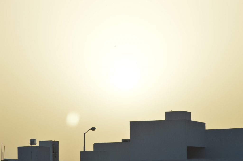 MÉRIDA, 11/06/2022. –Desde el continente africano llaga a la Península de Yucatán el polvo del desierto del Sahara. Amanece el cielo con colores “amarillos y rojos”.