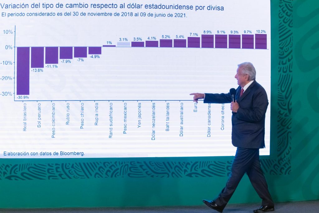 “Hablábamos de la ‘V’, que íbamos a caer e íbamos a levantarnos pronto cuando habían especialistas que hablaban de que iba a ser una ‘L’, que íbamos a caer y a quedarnos abajo mucho tiempo y afortunadamente no es así. Ya estamos creciendo, recuperando empleos. Es muy importante el que se ha mantenido fuerte el peso, inclusive se ha apreciado desde que estamos en el gobierno (…) en un 3 por ciento si tengo bien las cuentas”, aseveró.