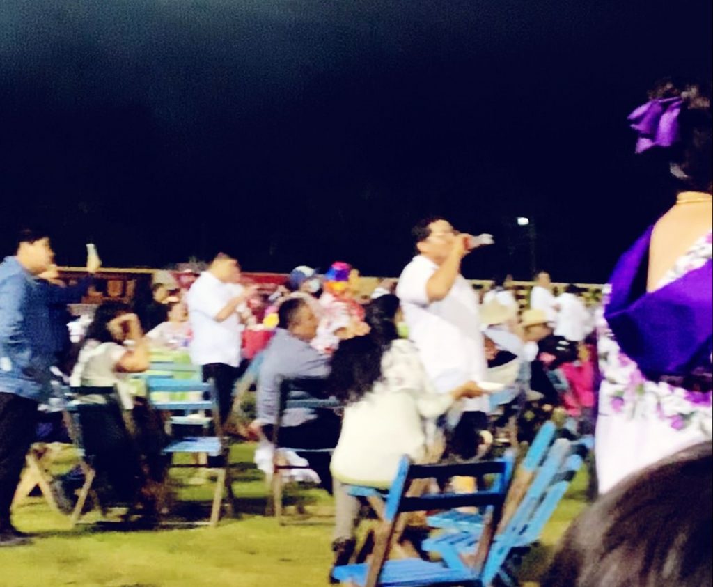 Esta se hace en el campo de béisbol, pero al llegar los asistentes esa noche, se encontraron que solo había unas sillas colocadas, y recibieron un plato con dos panuchos y un refresco; no había música.
