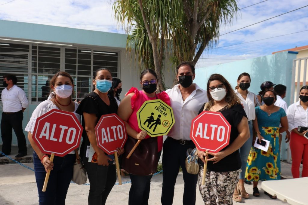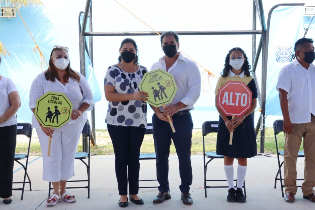 >>>Durante el evento, también se llevó a cabo la entrega de señalética vial que tiene el fin de ofrecer mayor seguridad a los estudiantes a la entrada y salida del horario escolar.