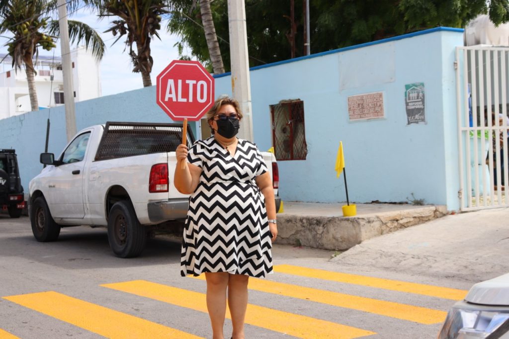 La directora de la secundaria, Estíbaliz Sansores, agradeció el apoyo de las autoridades, para después acudir a las puertas del plantel en donde fue recién pintado un paso peatonal por parte de la Dirección de Movilidad Urbana, para beneficio de los 235 estudiantes que acuden a este instituto.