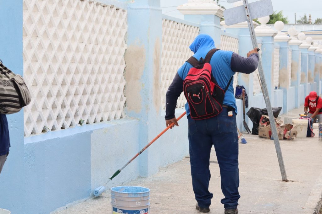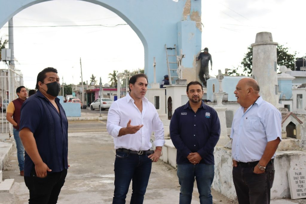 Durante la visita, acompañaron al edil el regidor de Servicios Públicos, Cementerios, Transporte y Agua Potable, Karim Dib López, así como el titular de la Unidad de Cementerios y Funerarias, Luis Armando Reyes Rodríguez, y el director de Servicios Públicos y Ecología, Canán Góngora Ortegón, quienes informaron que, como cada año, se reforzaron trabajos de albañilería, electricidad, pintura en fachadas, poda de árboles, aseo urbano, rehabilitación de la red sanitaria así como el retiro de maleza y residuos esto en apoyo a las familias.