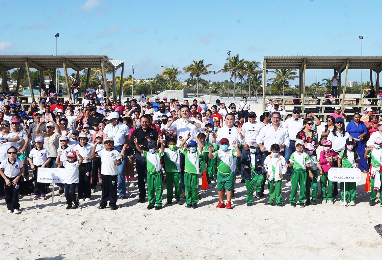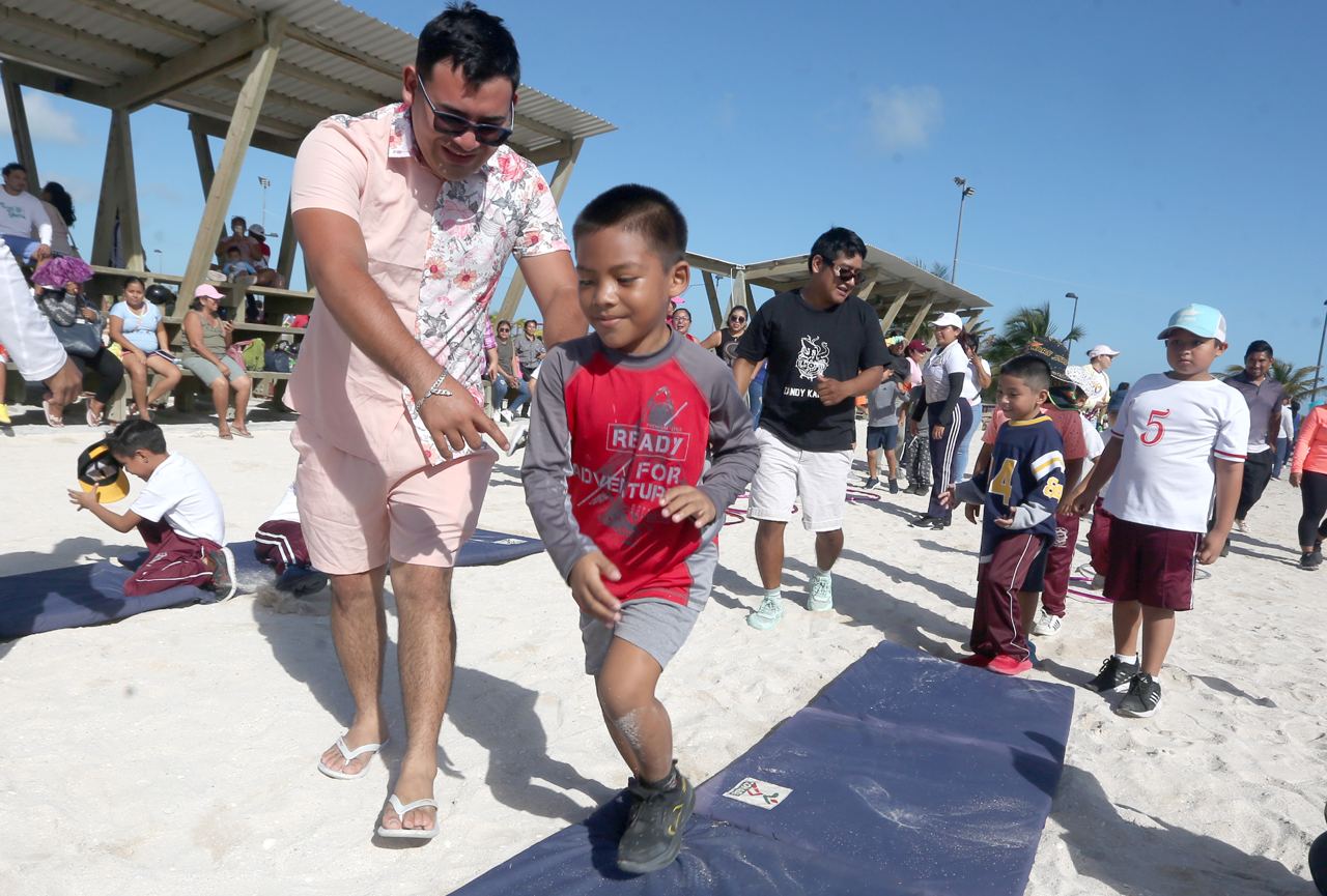 PROGRESO, YUCATÁN, 23/03/2023. —Para fomentar hábitos saludables y la convivencia familiar, la Secretaría de Educación del Gobierno del Estado de Yucatán (SEGEY), a través de la Coordinación de Educación Física, ofreció una divertida jornada en el Encuentro RecreActivo, Motriz y de Salud Escolar en el Playón de Progreso.