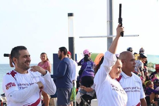 PROGRESO, YUCATÁN, 30/03/2025. —El Ayuntamiento de Progreso, organizó la Carrera de la Paz y Contra las Adicciones, realizada en su modalidad de Caminata en el Malecón Tradicional y con meta en el monumento a Juan Miguel Castro, con la finalidad que los jóvenes principalmente, no se involucren en las drogas o en conductas negativas.