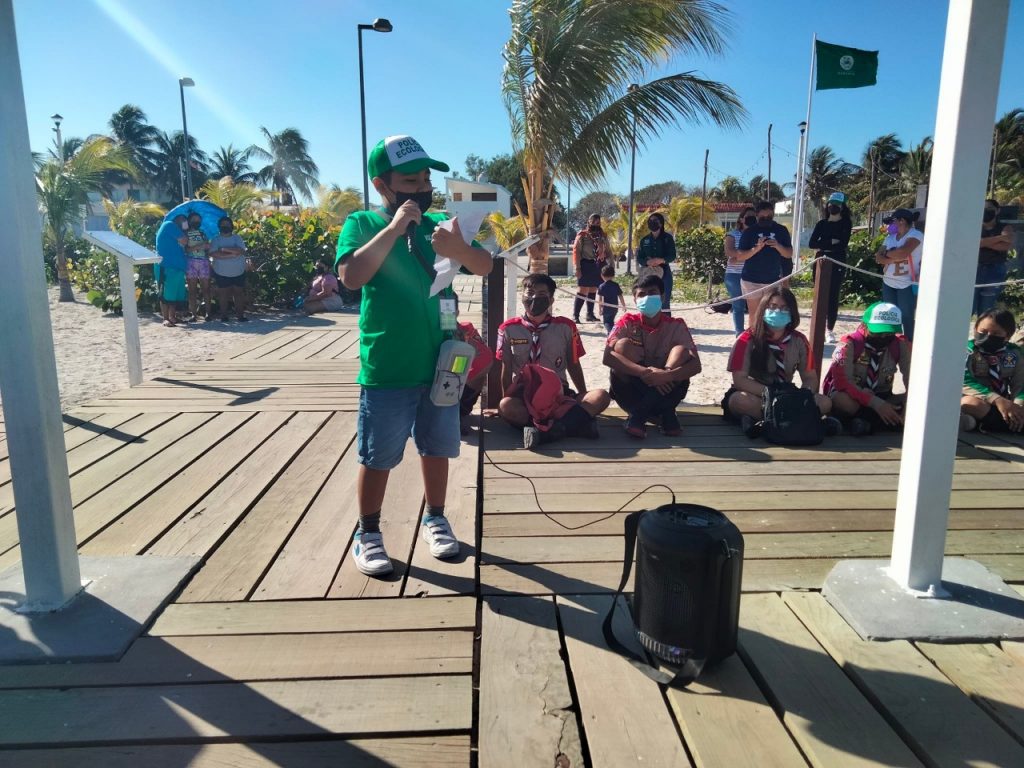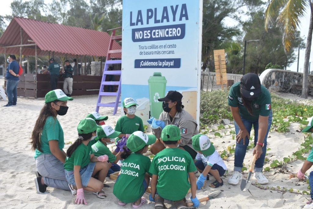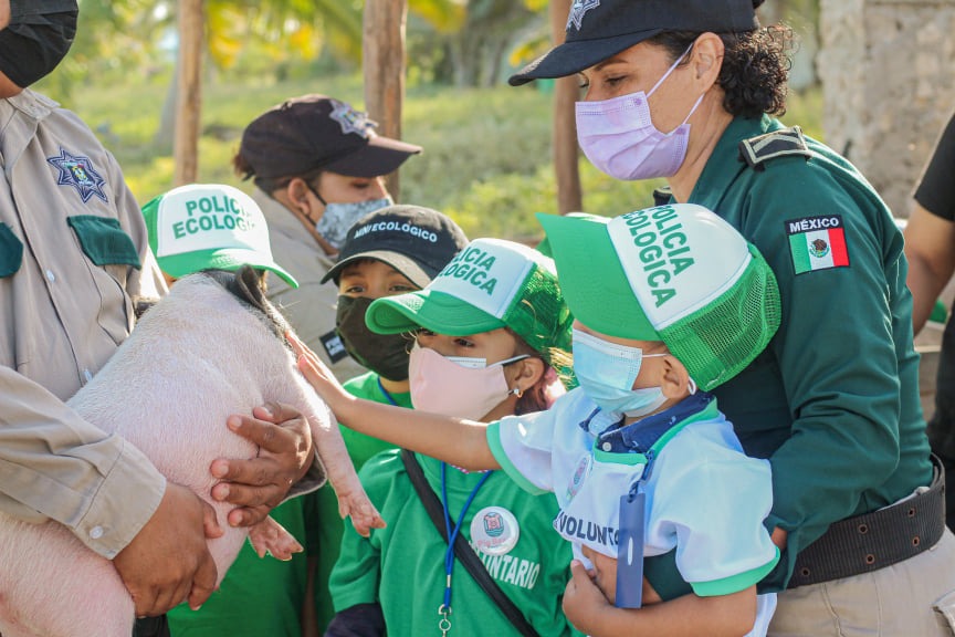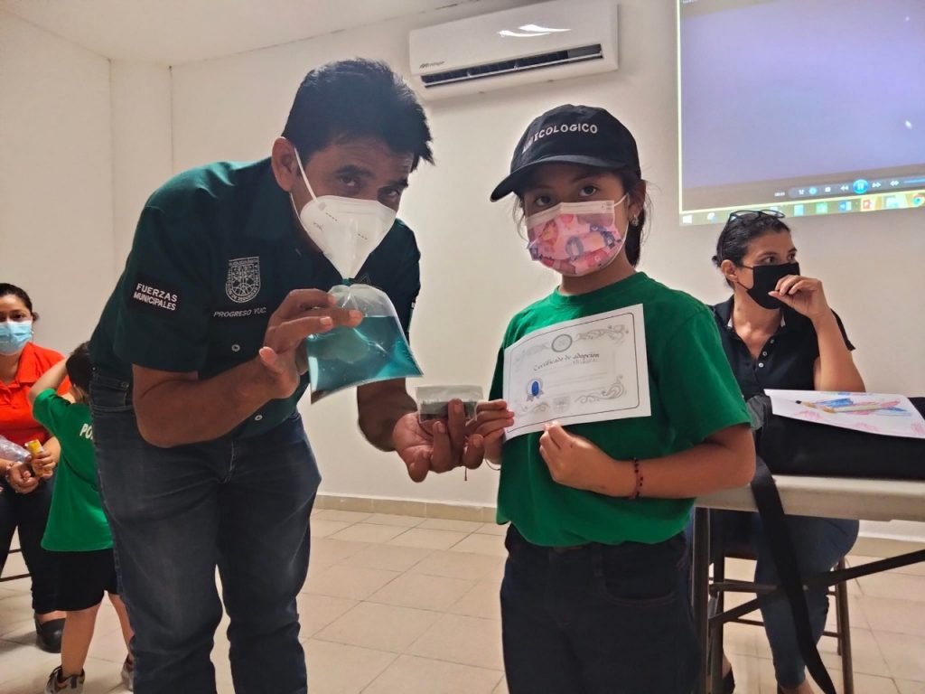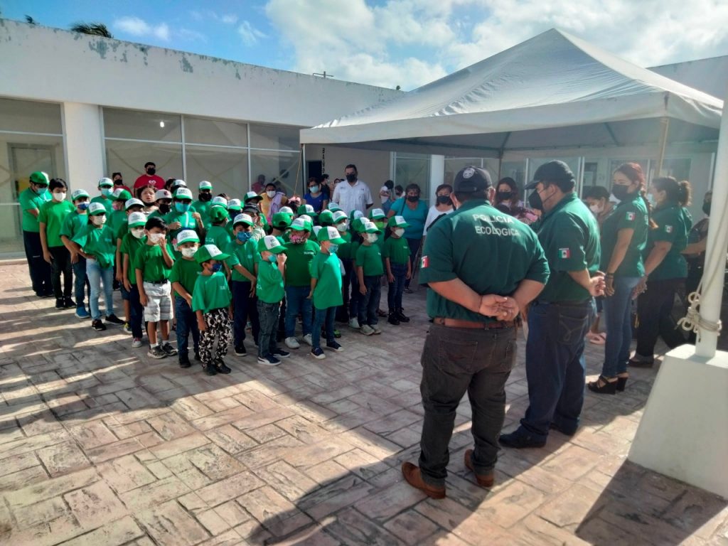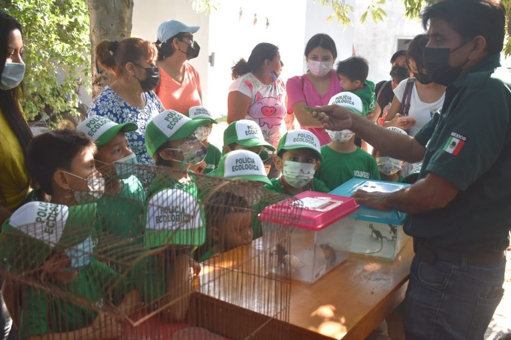 YUCATÁN, 26/10/2022. —A través de la Policía Ecológica, el Ayuntamiento de Progreso ha reforzado entre la población, el cuidado de la flora y la fauna nativa, pero uno de los programas que ha buscado crear conciencia en las nuevas generaciones es “Mini Voluntarios”.