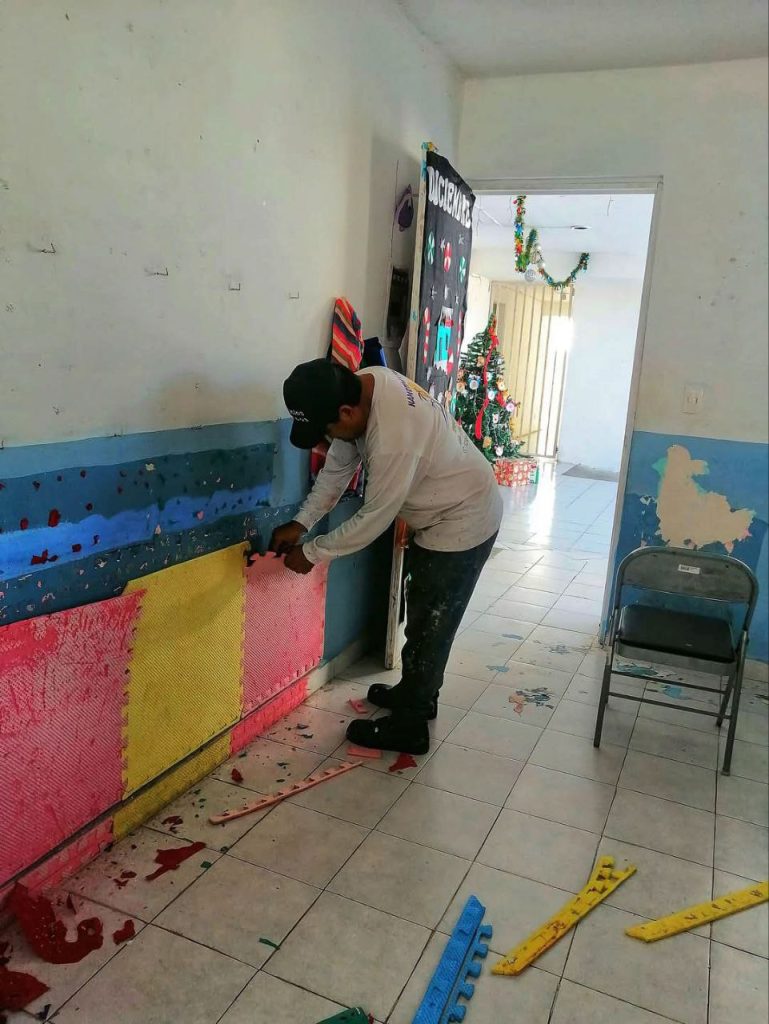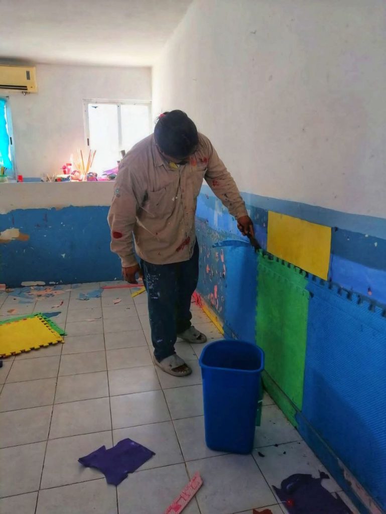 PROGRESO, YUCATÁN, 21/12/2024. —El Ayuntamiento de Progreso, presidido por el alcalde Erik Rihani González, a través de la Dirección de Servicios Públicos y Ecología, realizó acciones de mantenimiento en el Centro de Atención Infantil con el objetivo de garantizar espacios más seguros y limpios para niños que asisten a este centro.