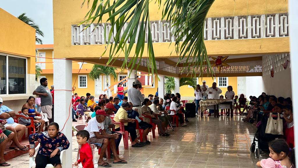 MÉRIDA, YUCATÁN, 08/01/2023. —Los Reyes Magos llegaron este domingo a Dzilam de Bravo, para llevar regalos y rosca a los militantes de ese municipio, en donde la coordinadora de municipal de afiliación es Silvia Marrufo.