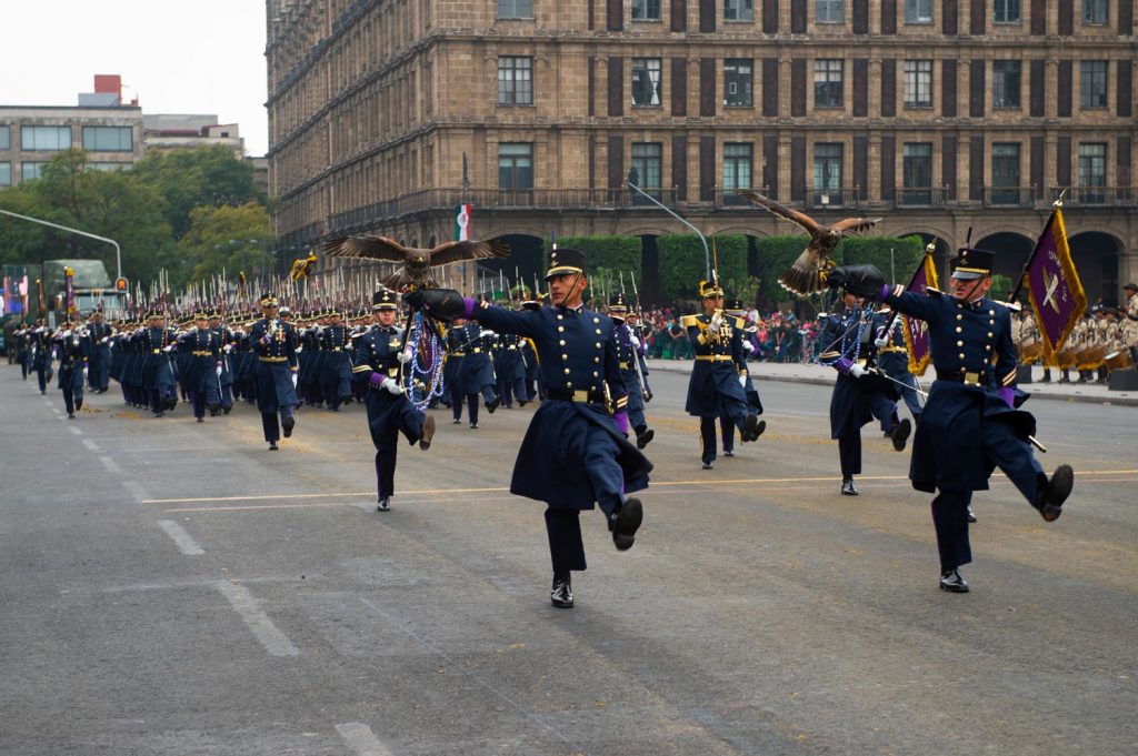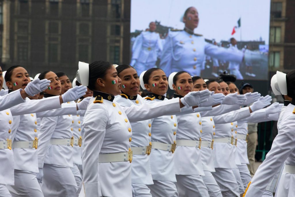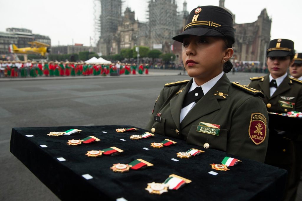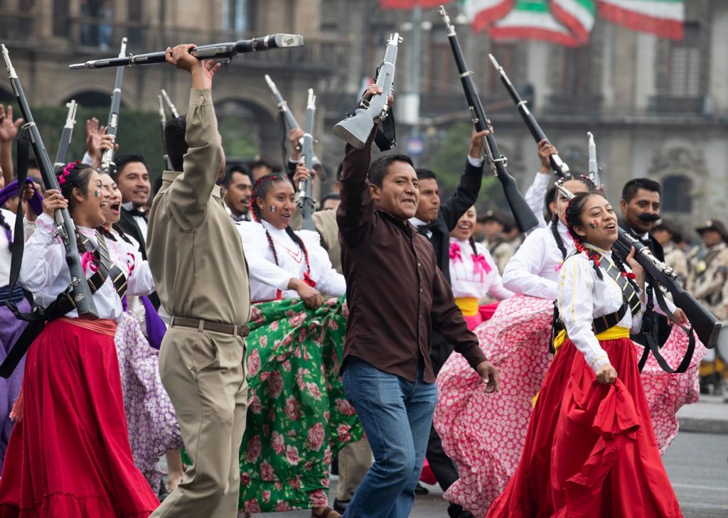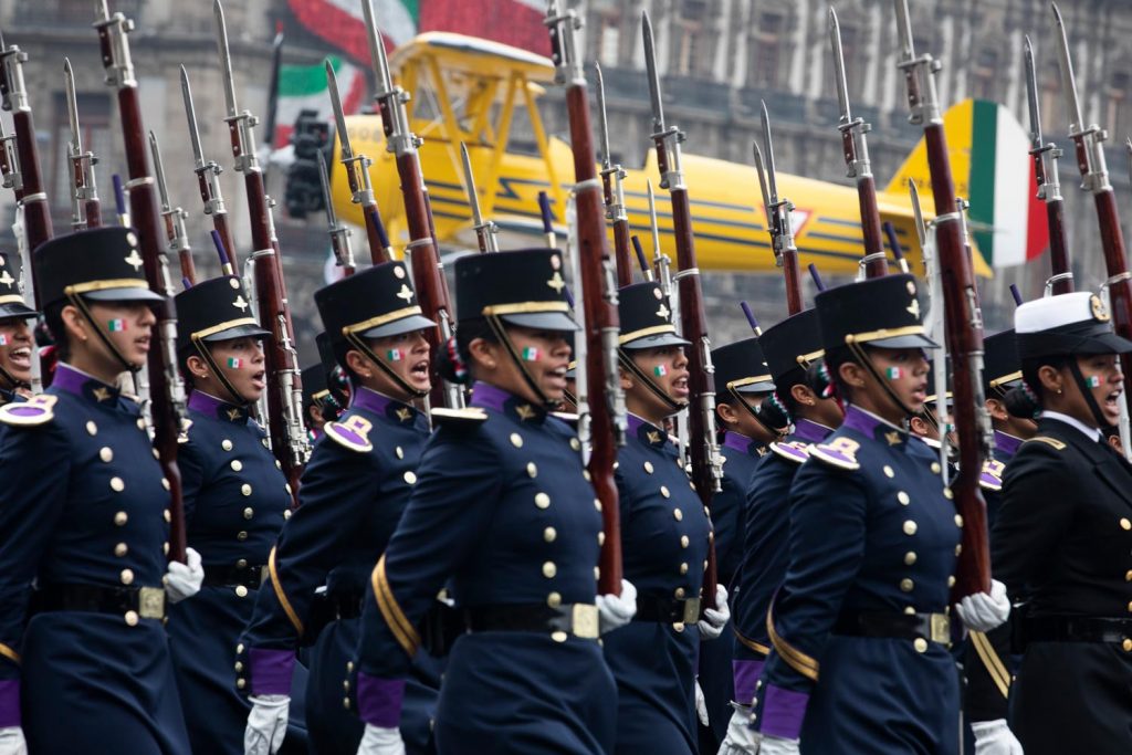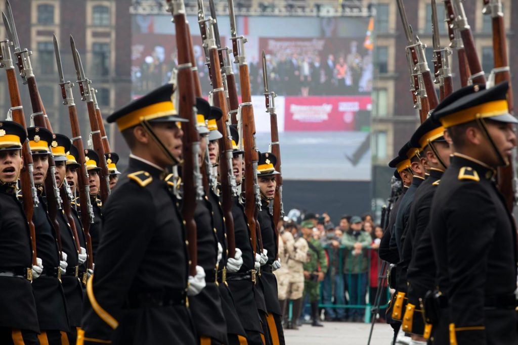 Contingentes representativos del Ejército, Fuerza Aérea, Armada, Guardia Nacional y asociaciones civiles con un efectivo de 14 banderas de guerra, cuatro estandartes, 8 mil 111 integrantes de las Fuerzas Armadas y de la Guardia Nacional en los que se incluyen 2 mil 420 mujeres, 80 infantes, una banda musical infantil, 180 civiles de pueblos indígenas pertenecientes a mayos, yaquis, mixtecos, zapotecos, otomíes y totonacos. Además, 555 civiles, 155 charros, 142 vehículos y 3 mil 140 caballos.