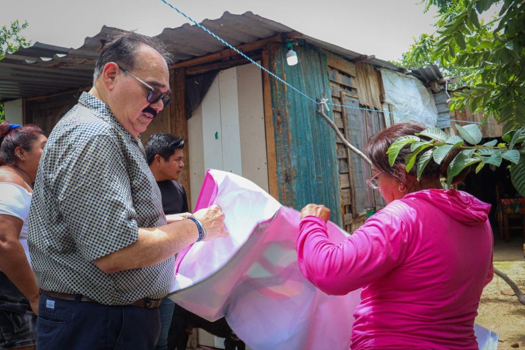 El legislador federal visitó algunos predios de familias de escasos recursos y constató las goteras, por lo que estableció que “lo importante de las lonas es que les sirvan, las cuales harán la diferencia entre mojarse y estar secos”.