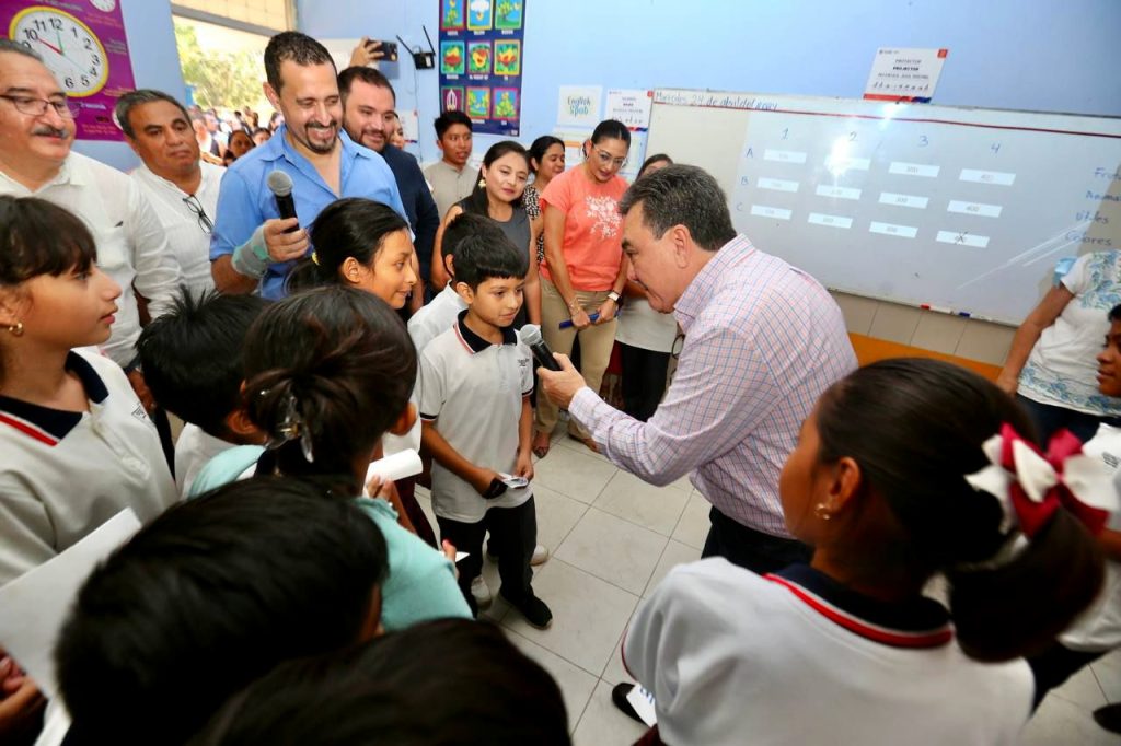 “Queremos tener niñas y niños bien preparados, con clases de inglés, robótica, que son rubros con mucha demanda, por eso estamos trabajando para darles a nuestros estudiantes las bases de un futuro exitoso en lo académico y en lo laboral”, destacó Vidal Aguilar, acompañado de los líderes de los Sindicatos de Trabajadores de la Educación.