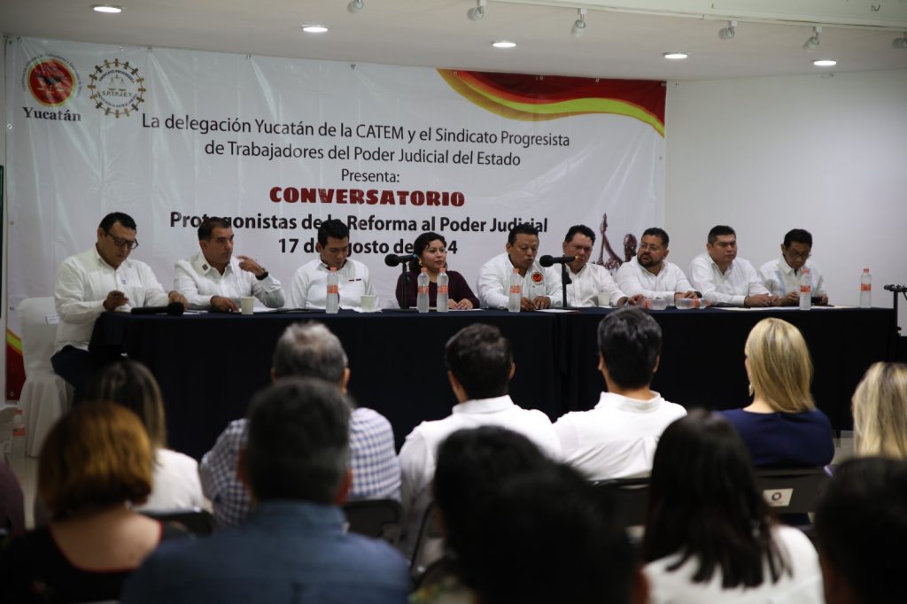 >>> El Secretario General de la CATEM en Yucatán, José Manuel Peniche Marenco, convocó con el afán de analizar a profundidad la Reforma al Poder Judicial, tema de interés para la nación, la Delegación Estatal de la CATEM a un conversatorio titulado “Protagonistas de la Reforma de la Reforma” en donde se escuchó la opinión de expertos y académicos en el tema.