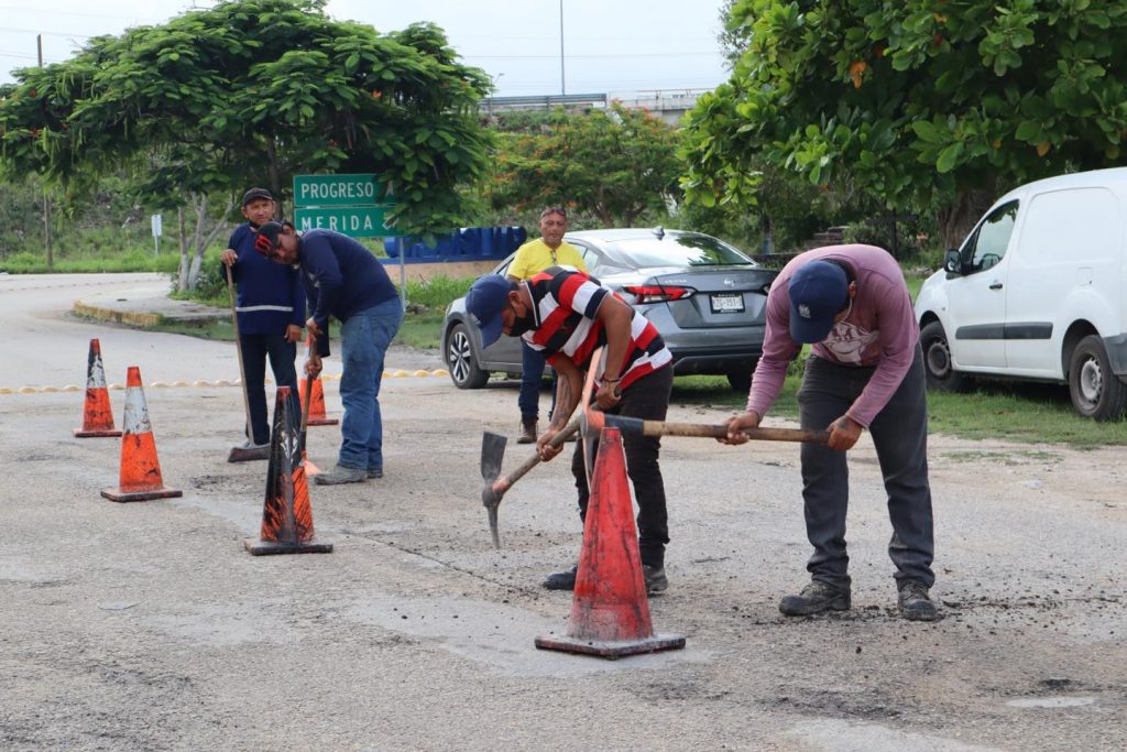 Progreso, 13/08/2022. – El Ayuntamiento que preside el alcalde Julián Zacarías Curi, a través de la Dirección de Servicios Públicos y Ecología, realizaron trabajos de bacheo en San Ignacio.