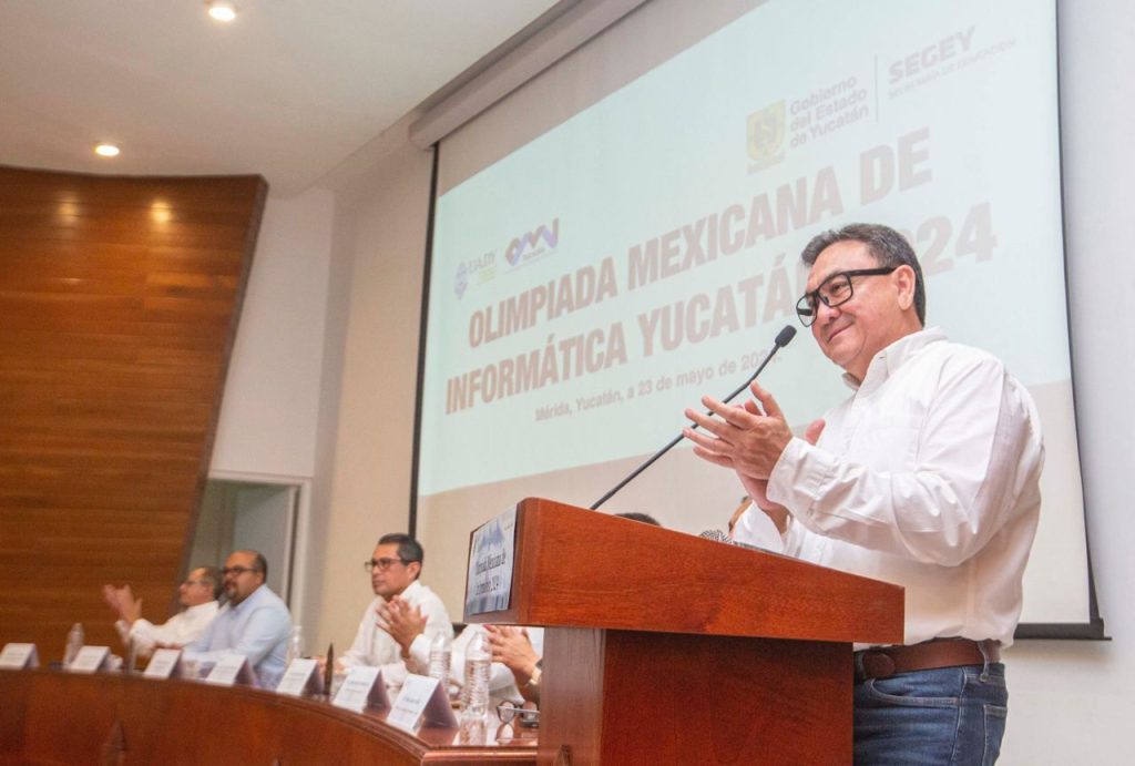 Ante el rector de la UADY, Carlos Estrada Pinto, el titular de la SEGEY, Liborio Vidal Aguilar, destacó que la Olimpiada Mexicana de Informática no solo fomenta habilidades técnicas, sino también el pensamiento lógico, la resolución de problemas y la creatividad, cualidades invaluables para el éxito en cualquier ámbito.
