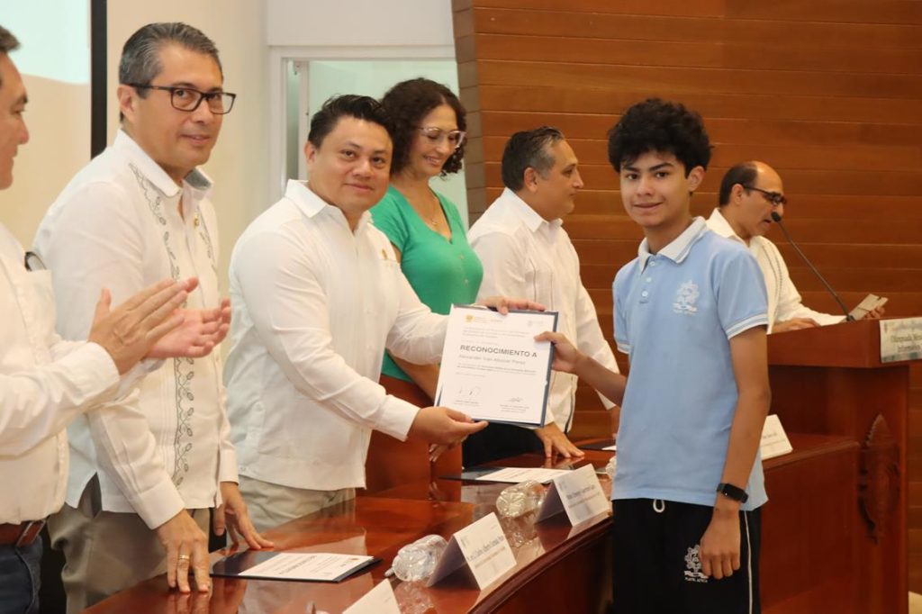 “Hoy es un día muy importante de celebrar ya que firmamos un convenio de colaboración para que esto mejore, les felicito por este resultado que han tenido, obviamente también una felicitación a todos los que conforman su familia, porque creo que este es un logro siempre que se debe compartir entre el hogar y la escuela, pues con el apoyo de la UADY y SEGEY, podemos lograr cosas muy importantes y relevantes”, señaló.