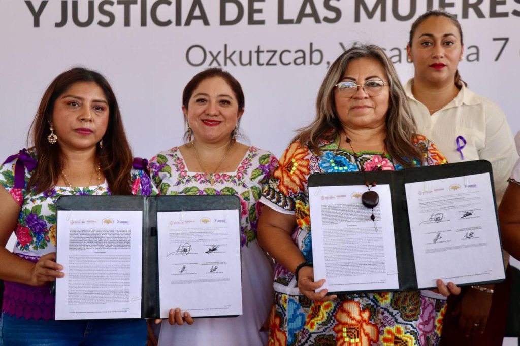La titular de la Secretaría de las Mujeres (SEMUJERES), Sisely Burgos Cano, entregó los reconocimientos y firmó el documento de “Compromisos para la paz y la justicia de las mujeres mayas de Yucatán”, con las representantes de las agrupaciones Red de Promotoras Mayas de Justicia en Yucatán, EQUIS Justicia para las Mujeres y el Centro Alternativo para el Desarrollo Integral Indígena (CADIN).