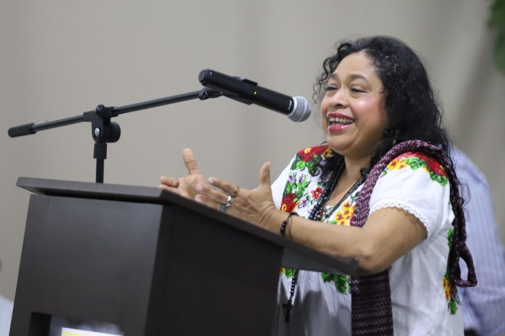 Los panelistas invitados fueron la maestra Pilar Villarreal Ramírez, la maestra Sandra Pacheco Itzá, el maestro Jesús Alpuche Solís y la Lidia Noh Torres, directora de Educación Indígena de la SEGEY.