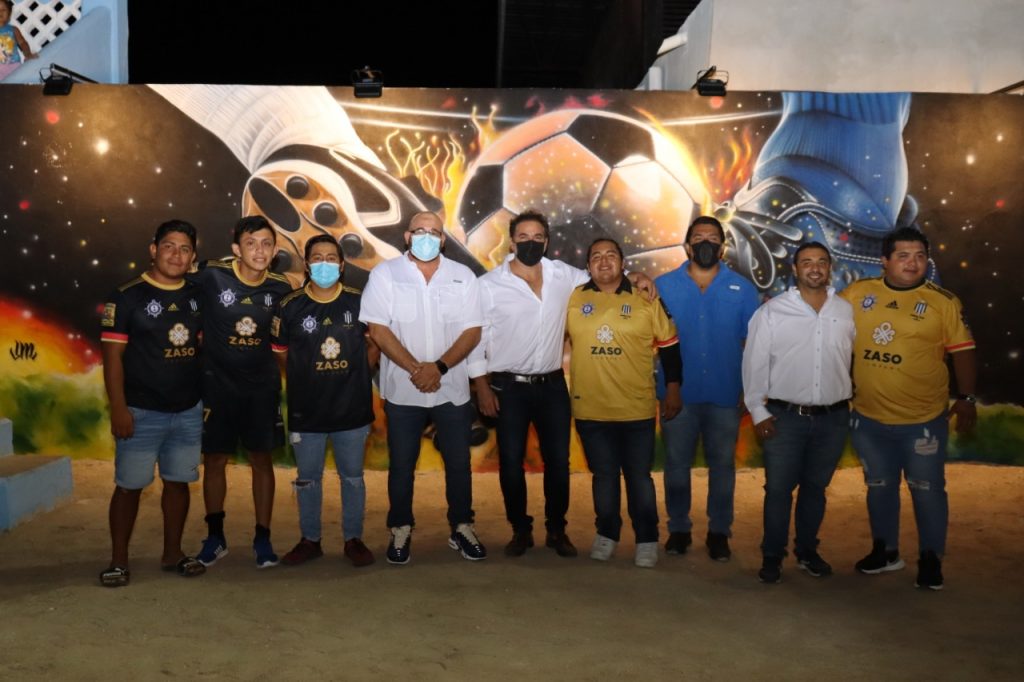 Sin embargo, llamó la atención de jugadores y vecinos la creación de un mural alusivo al fútbol, lo cual agrado a los presentes por el detalle hacia quienes aman y practican esta disciplina deportiva.