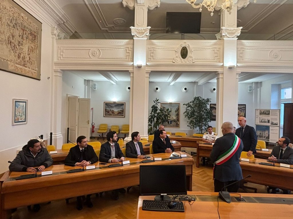 La comitiva yucateca sostuvo pláticas en el Salón Azul del Municipio de Trieste, con el alcalde Roberto Dipiazza y ejecutivos de Fincantieri, entre ellos, el CEO Massimo Costa y Alessandro Tocci, donde Díaz Mena detalló que la ampliación del Puerto de Altura de Progreso es una de las piezas clave del Renacimiento Maya.